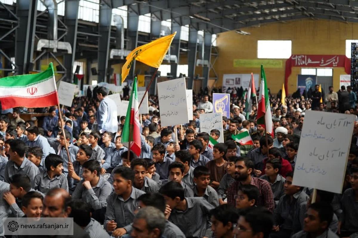 اجتماع یوم الله ۱۳ آبان در حمایت از مردم مظلوم فلسطین و لبنان و محکومیت جنایات رژیم جعلی صهیونیستی در مصلی رفسنجان برگزار شد.