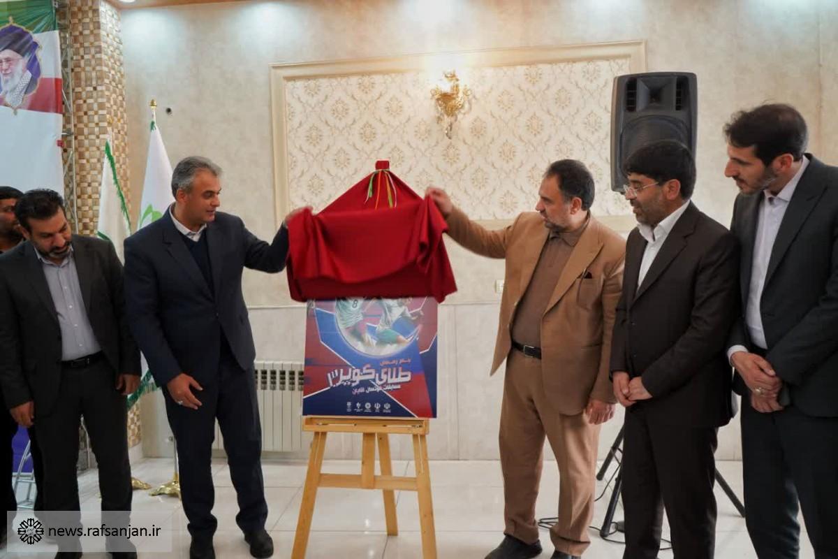 به گزارش پایگاه اطلاع رسانی شهرداری رفسنجان، همزمان با هشتمین روز از دهه مبارکه فجر، آئین رونمایی از پوستر مسابقات فوتسال جام رمضان با عنوان «طلای کویر ۳» با حضور میثم پاریزی مدیر کل ورزش و جوانان استان، شهردار رفسنجان، سید حسین رحیمی رئیس و اعضای شورای شهر، مسئول بسیج ورزشکاران، اعضای کمیته برگزاری مسابقات «طلای کویر»، سرپرستان تیمهای شرکتکننده و جمعی از مسئولین استان و شهرستان در محل هتل جهانگردی برگزار شد.