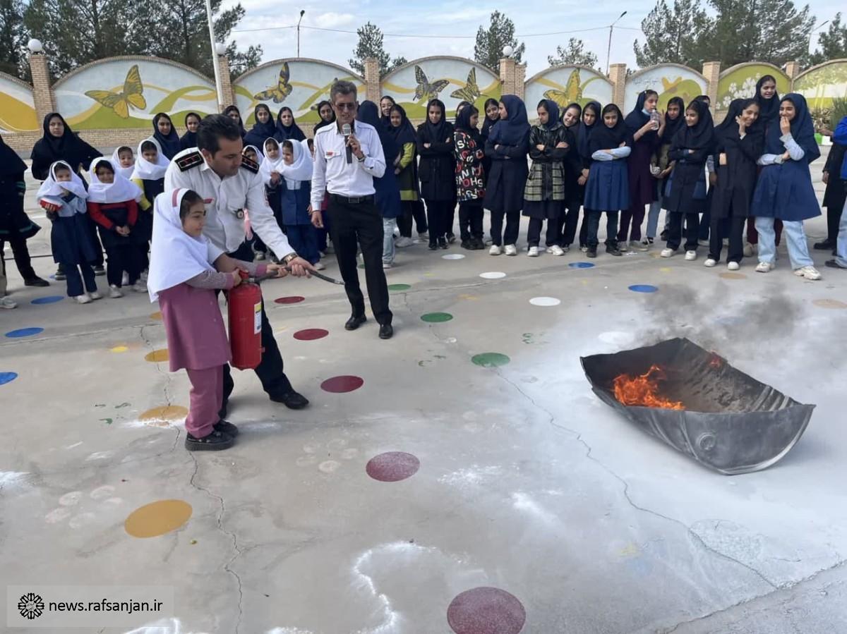 آموزش اصول ایمنی و آتش نشانی به پرسنل ادارات و دانش آموزان توسط آتش نشانان رفسنجان