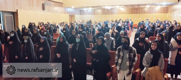 به گزارش پایگاه اطلاع رسانی شهرداری رفسنجان، این تئاتر جذاب و دیدنی ویژه بانوان با همکاری اداره آموزش و پرورش و هیئت دختران حاج قاسم با حضور بیش از هزار نفر از بانوان در پنج سانس به مدت دو روز به اجرا درآمد.