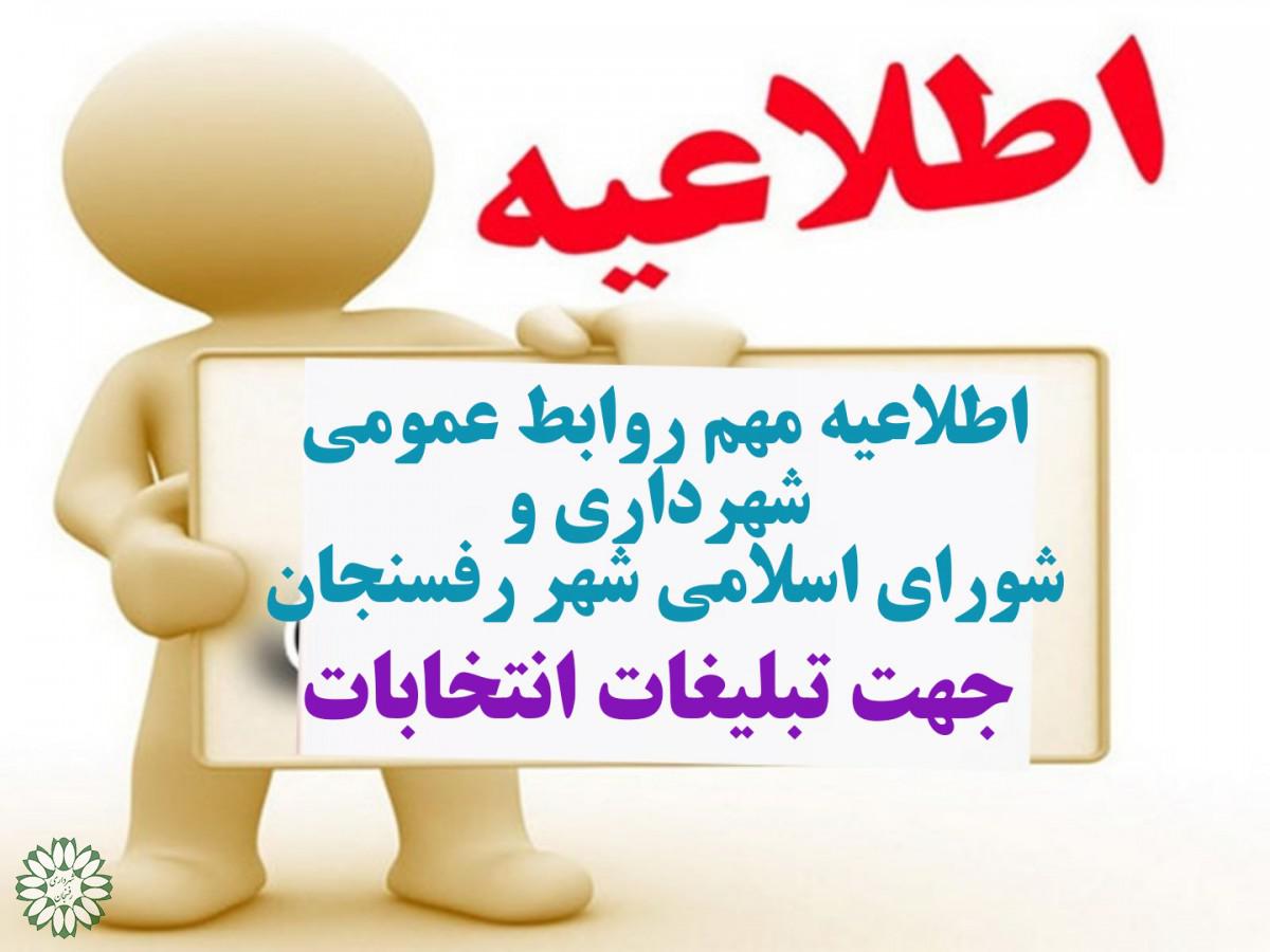 اطلاعیه مهم روابط عمومی شهرداری وشورای اسلامی شهر رفسنجان جهت تبلیغات انتخابات