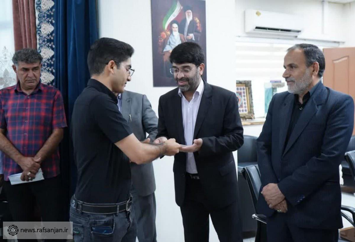 به گزارش روابط عمومی باشگاه ورزشی شهرداری رفسنجان، مراسم اهدای جوایز نقدی مسابقات «طلای کویر»با حضور حسین رضایی فرماندار،سید حسین رحیمی رئیس شورای اسلامی شهر، مجید کهنوجی شهردار و مجتبی رمضانی مسئول بسیج ورزشکاران در محل دفتر شهردار برگزار شد.