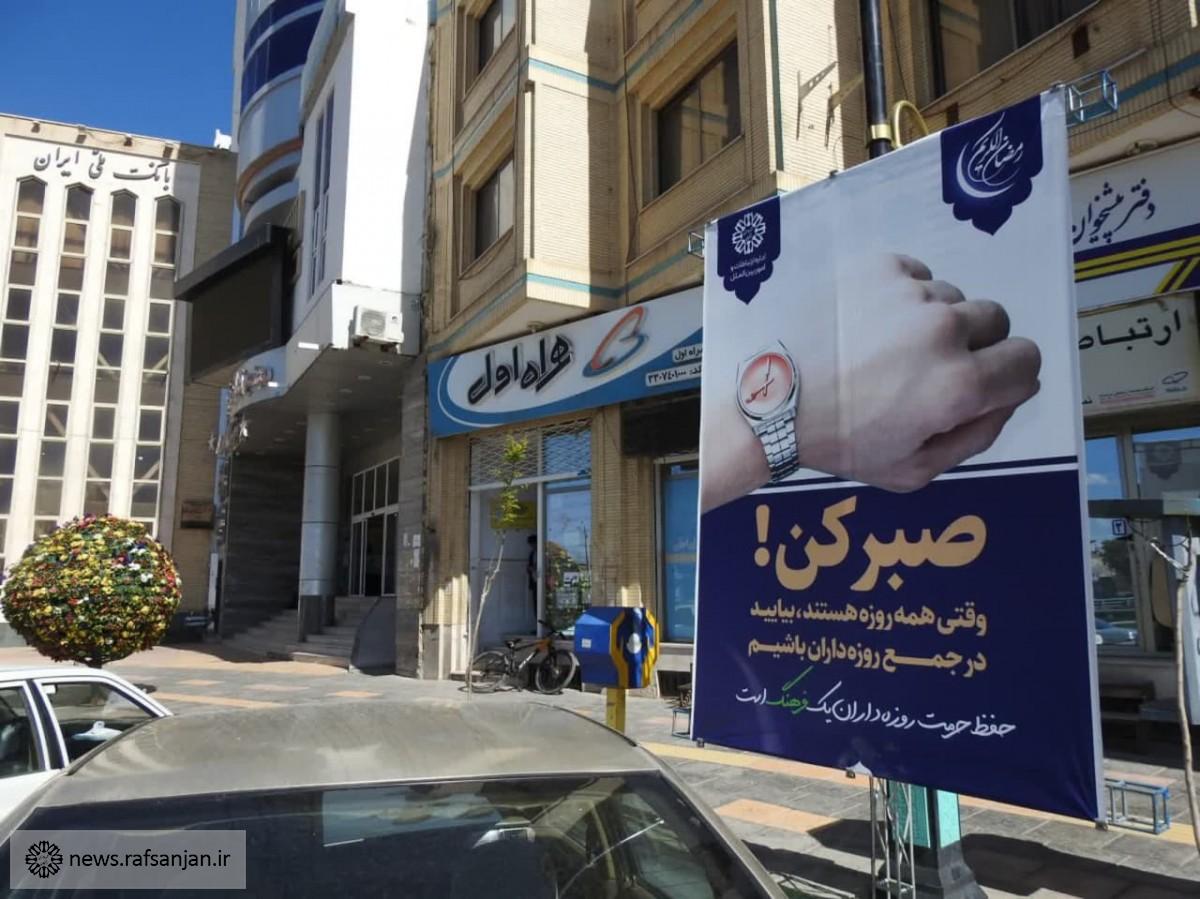 به همت اداره ارتباطات و امور بین الملل شهرداری رفسنجان تبلیغات آموزشی ماه مبارک رمضان در بیش از ۲۰ نقطه شهر به اکران در آمد.