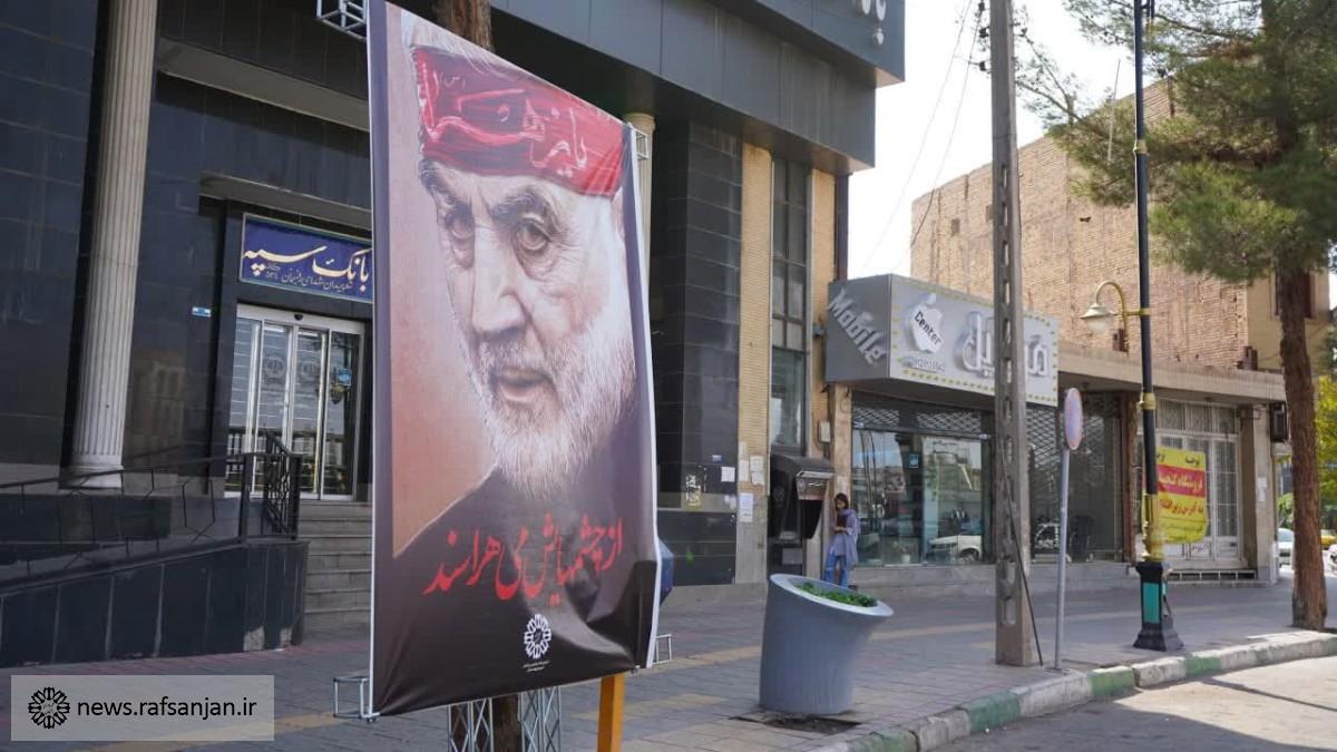 به همت اداره ارتباطات و امور بین الملل شهرداری رفسنجان طرح هایی با عنوان «از چشم هایش می هراسند» تمثال سردار شهید سلیمانی در سطح شهر اکران شد.