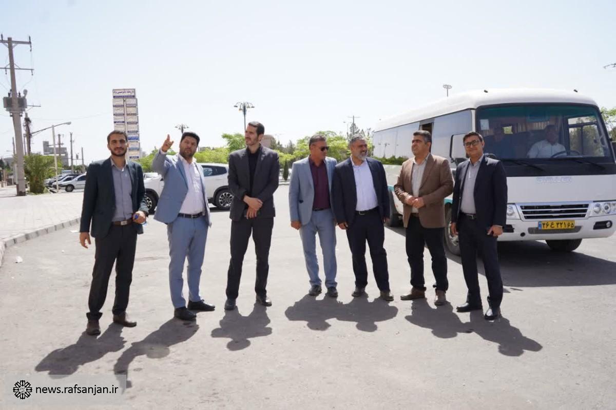 به گزارش پایگاه اطلاع رسانی شهرداری رفسنجان، در این بازدید صباغ جعفری رئیس کمیسیون فرهنگی شورای شهر، معاون خدمات شهری، مدیرعامل سازمان سیما،منظر و فضای سبز شهری، رئیس اداره سیما و منظر، شهرداران مناطق یک و دو و جمعی از مدیران شهرداری حضور داشتند.