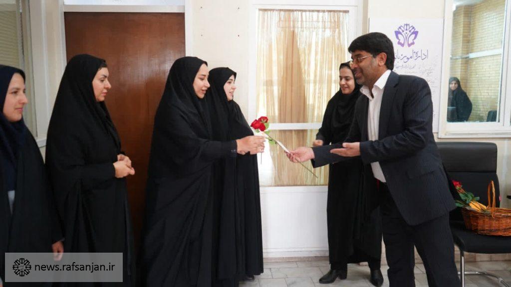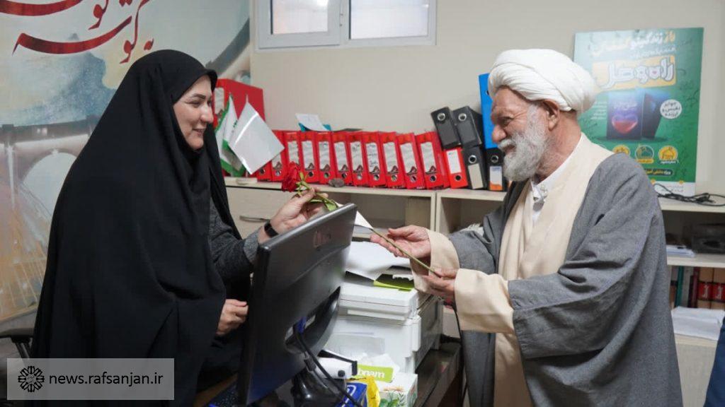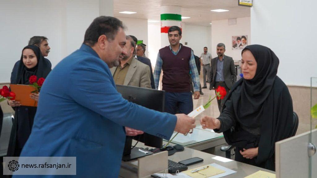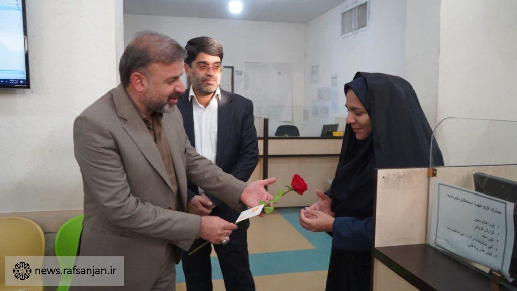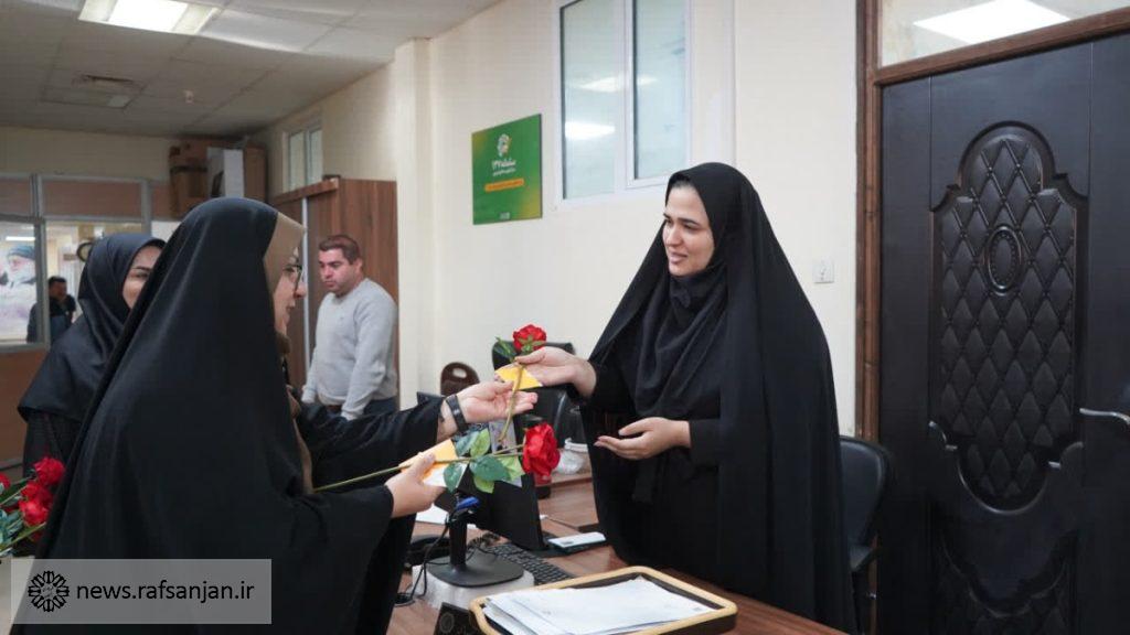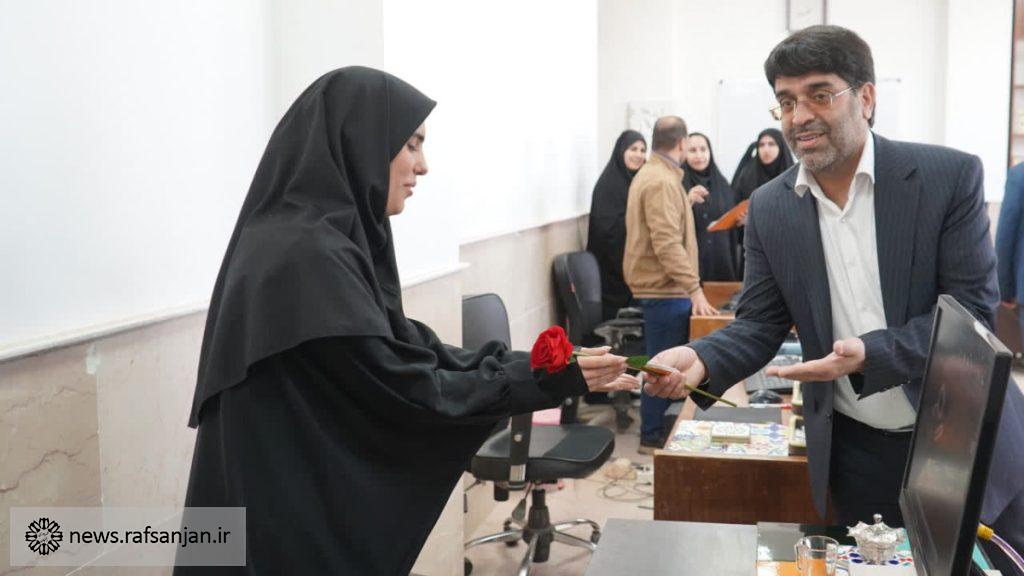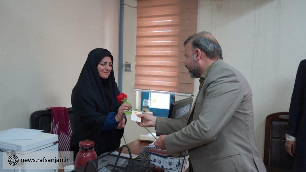 به گزارش پایگاه اطلاعرسانی شهرداری رفسنجان، به مناسبت میلاد با سعادت حضرت فاطمه زهرا(س) و همزمان با گرامیداشت روز زن، شهردار رفسنجان با همراهی رئیس و اعضای شورای اسلامی شهر، با حضور در واحدها و مناطق مختلف شهرداری، از بانوان شاغل در این مجموعه تجلیل کرد.