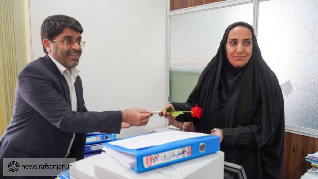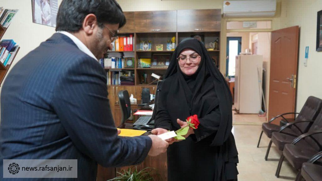 شهردار رفسنجان به همراه رئیس و اعضای شورا، به مناسبت روز زن از بانوان شاغل در شهرداری تقدیر کردند.