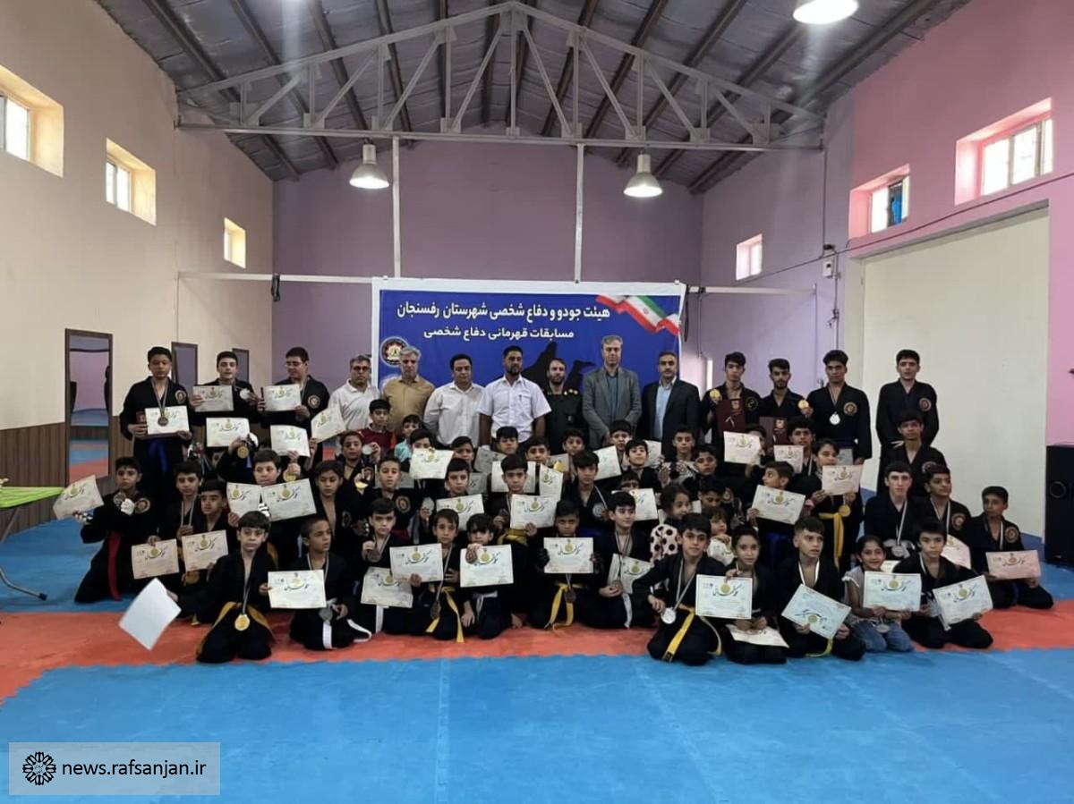به گزارش روابط عمومی باشگاه ورزشی شهرداری رفسنجان، مسابقات دفاع شخصی شهرستان با همکاری هیات جودو رفسنجان و باشگاه ورزشی شهرداری در رده های سنی؛ نونهالان ، نوجوانان و جوانان در ۱۵ وزن با حضور ۷۰ رزمیکار در سالن هلالاحمر برگزار شد.