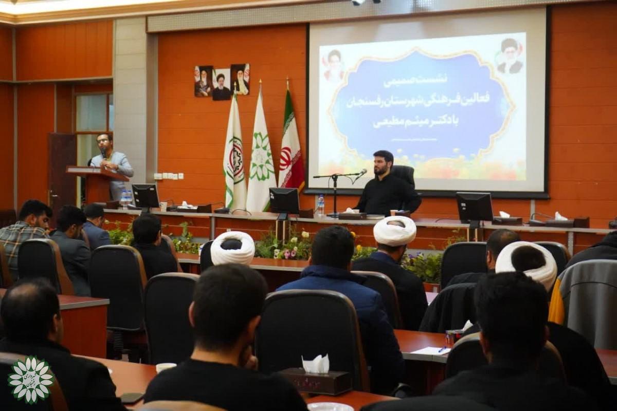 به همت معاونت فرهنگی اجتماعی شهرداری نشست صمیمی فعالان فرهنگی رفسنجان با حضور دکتر میثم مطیعی در فرمانداری برگزار شد.