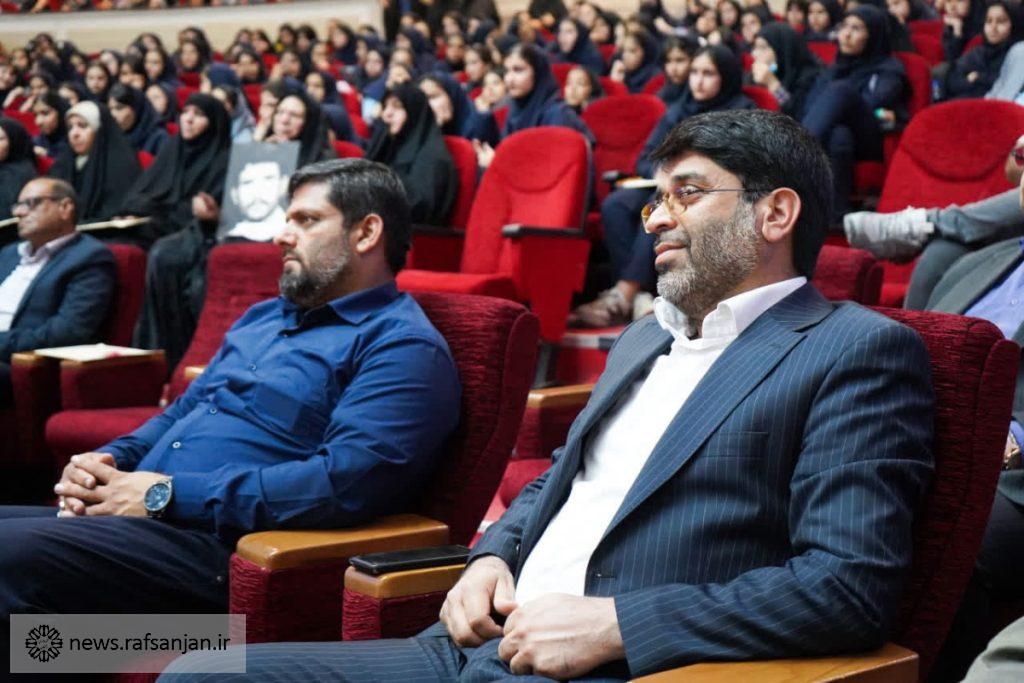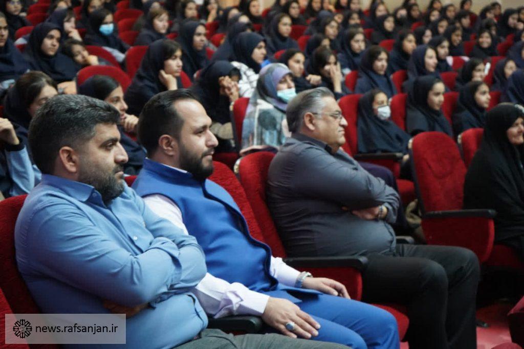 به گزارش پایگاه اطلاع رسانی شهرداری رفسنجان، در این همایش حجتالاسلام والمسلمین رضایی امام جمعه، مهندس مجید کهنوجی شهردار رفسنجان، رئیس اداره بنیاد شهید رفسنجان، دکتر مهلقا حکمت نماینده شورای اسلامی شهر رفسنجان و جمعی از خانوادههای معزز شهدا و دانشآموزان دختر حضور داشتند.
