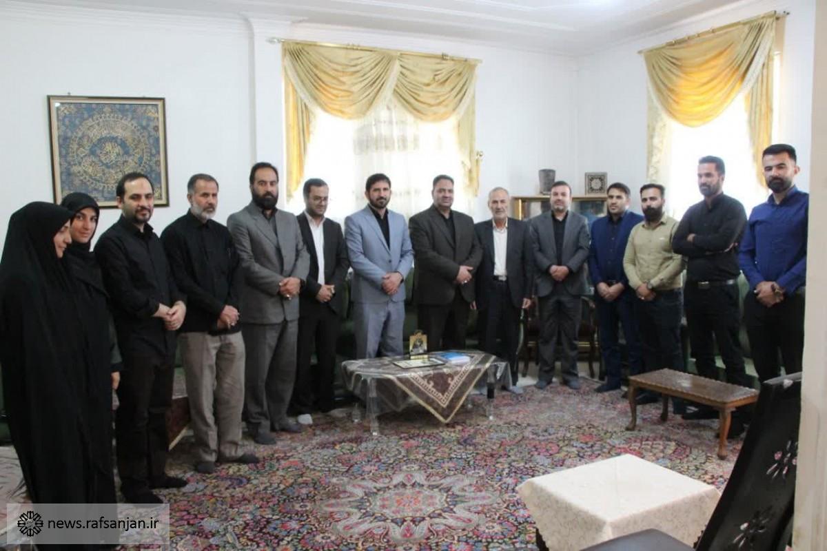 بهگزارش پایگاه اطلاعرسانی شهرداری رفسنجان، در این دیدار که صبح امروز سهشنبه انجام شد، سید حسین رحیمی رئیس شورای شهر رفسنجان بههمراه مهندس حسین کهنوجی رئیس کمیسیون برنامه و بودجه شورای شهر، سید محسن سجادی معاون هنری شهرداری، علی ترکآبادی جانشین اداره فرهنگ و ارشاد اسلامی رفسنجان، مصطفی دهقانرجبی رئیس بنیاد شهید، امیر موحدی مسئول بسیج هنرمندان و بهناز شریفی مسئول فرهنگسرای رسانه حضور داشتند.