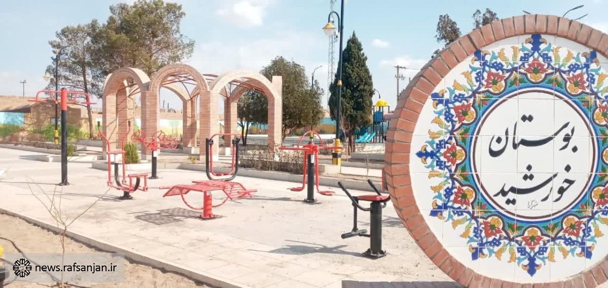 به گزارش پایگاه اطلاع رسانی شهرداری رفسنجان، مهندس سعید سلطانی با اعلام این خبر گفت: بوستان های جدید الاحداث ولیعصر(عج) در محله معراج شمالی، آفتاب در شهرک آفتاب، خورشید در محله کریم آباد، بوستان محله ای خیابان نظام مهندسی، بوستان محله ای عابدینی ۳/۲ ، وصال، مصطفی خمینی ۴۵ و بوستان بعثت در بلوار بعثت ساحلی به وسایل ورزشی و تفریحی مجهز شدند.