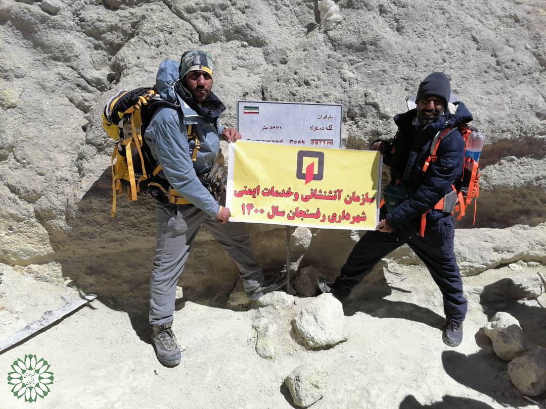 دوتن از پرسنل سازمان آتش نشانی وخدمات ایمنی شهرداری رفسنجان به مناسبت دهه امامت وولایت به قله دماوند صعود کردند.