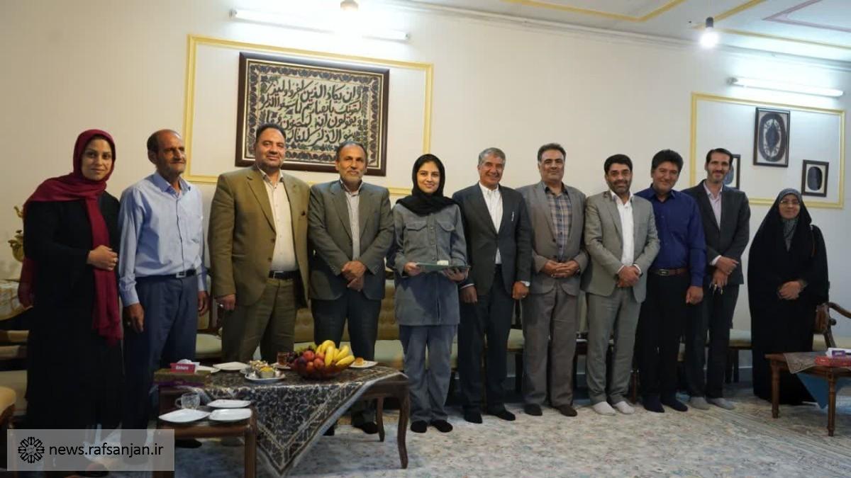 مسئولین رفسنجان با خانواده ریحانه رنجبر کبوترخانی، رتبه چهارم کشوری و اول منطقه دو در آزمون سراسری هنر دیدار و گفتگو کردند.