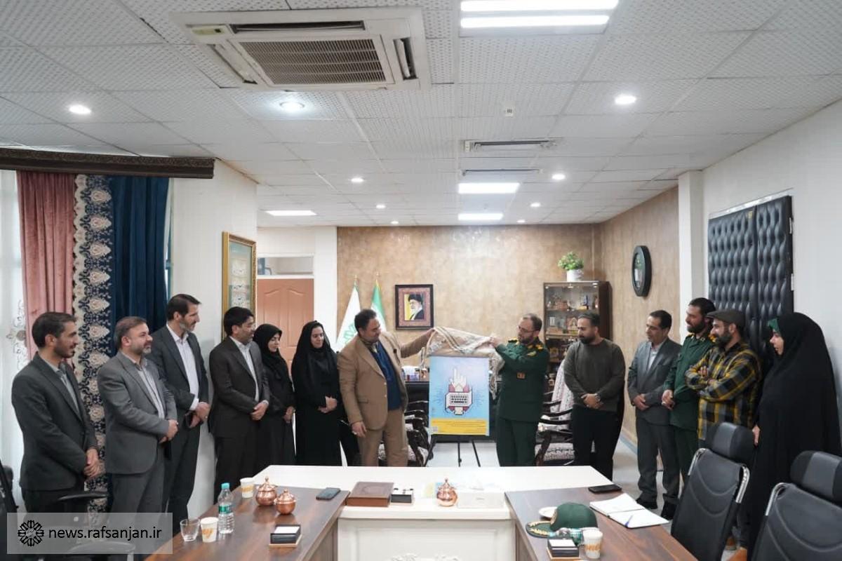 به گزارش پایگاه اطلاع رسانی شهرداری رفسنجان، نشست هم اندیشی برگزاری هفتمین جشنواره فعالان دفاع مقدس و مقاومت در فضای مجازی در رفسنجان با حضور رئیس سازمان توسعه فرهنگ دفاع مقدس در فضای مجازی و فناوری های نوین، مدیرکل بنیاد حفظ آثار و ارزشهای دفاع مقدس استان کرمان، رئیس و اعضای شورای شهر رفسنجان و شهردار رفسنجان در محل دفتر شهردار برگزار شد.