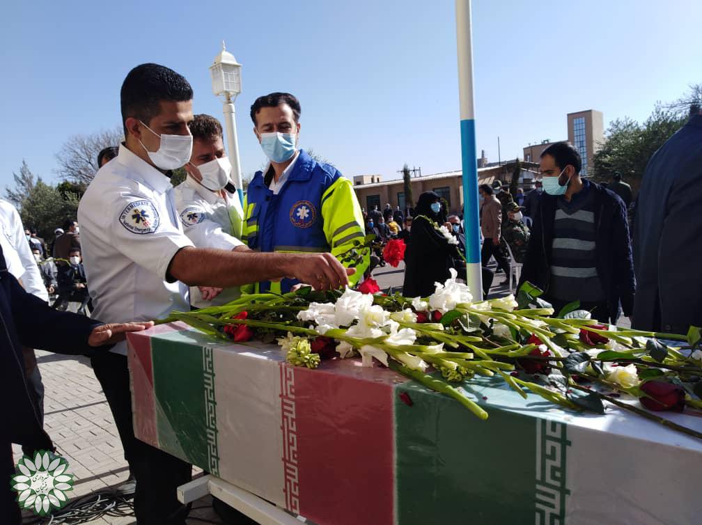 ?حضور مهندس مختاری سرپرست شهرداری و جمعی از مسئولین وپرسنل شهرداری رفسنجان در آیین وداع باپیکر دو شهید گمنام