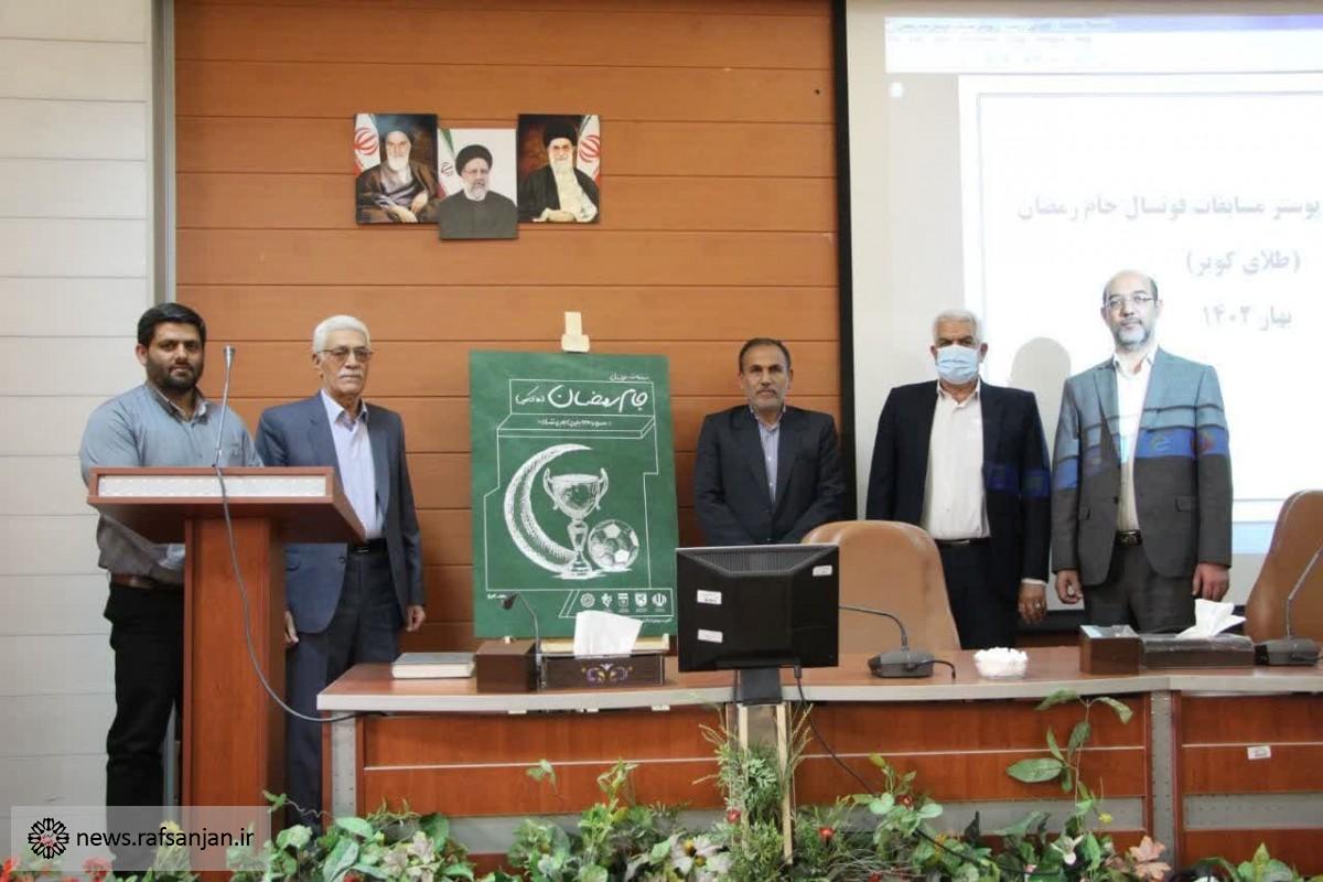 آئین رونمایی از پوستر رسمی و قرعه کشی و گروه بندی مسابقات فوتسال جام رمضان «طلای کویر» در سالن اجتماعات فرمانداری رفسنجان برگزار شد.