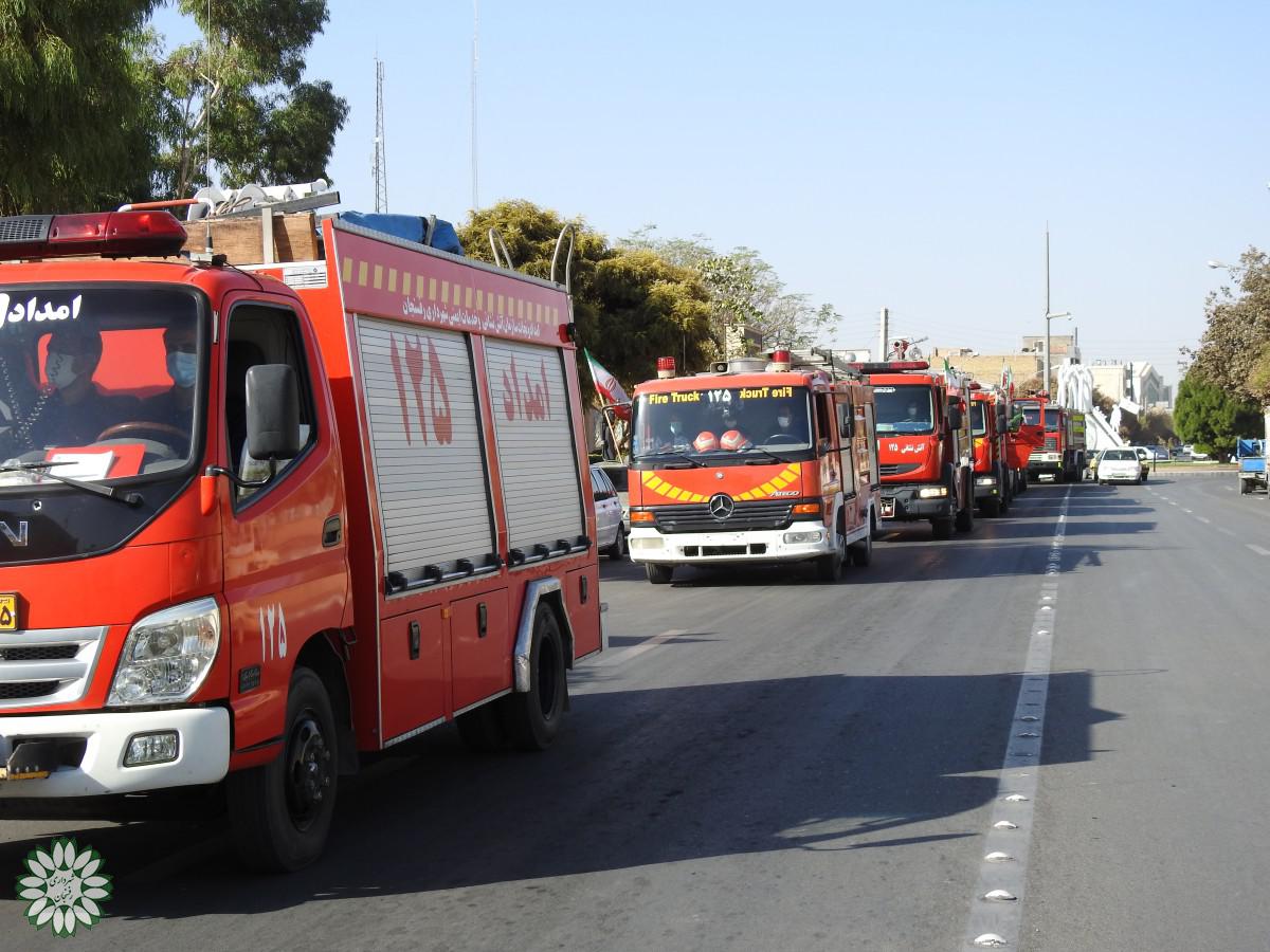رژه ناوگان خودرویی وموتوری سازمان آتش نشانی و خدمات ایمنی شهرداری رفسنجان به مناسبت گرامیداشت ۷ مهر روز ملی آتش نشانی وایمنی