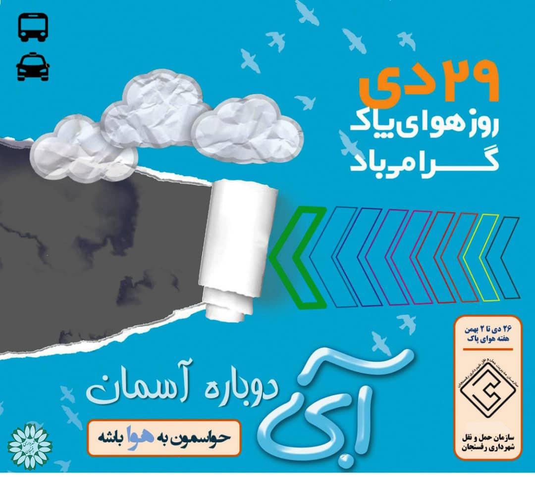 سرویس دهی رایگان سازمان حمل و نقل شهرداری رفسنجان در روز هوای پاک
