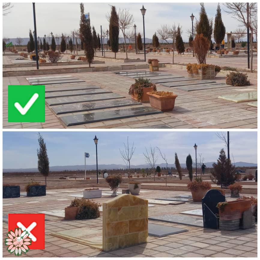 ✍️با توجه به ممنوعیت نصب هر گونه تصویر و سنگ بالای قبور اموات متاسفانه مشاهده شده که در مواردی نادر عده ای از شهروندان بدون توجه به دستورالعمل ها اقدام کرده اند که بایستی برای جمع آوری آن تا پایان بهمن ماه اقدام کنند.