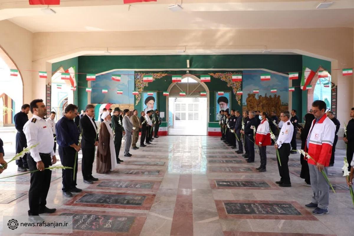 به گزارش پایگاه اطلاع رسانی شهرداری رفسنجان، همزمان با هفتم مهرماه روز آتشنشانی و خدمات ایمنی، مسئولین رفسنجان با حضور در گلزار شهدا ضمن گلباران و عطر افشانی قبور مطهر شهدا با آرمان های امام راحل و شهدا تجدید میثاق کردند.