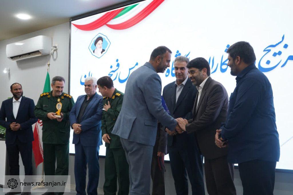 به گزارش پایگاه اطلاع رسانی شهرداری رفسنجان، این تقدیر از سوی کانون بسیج ورزشکاران و به پاس تلاشها و حمایتهای مستمر شهردار رفسنجان در زمینه گسترش زیرساختهای ورزشی و توسعه فعالیتهای ورزشی در سطح شهر انجام شد.