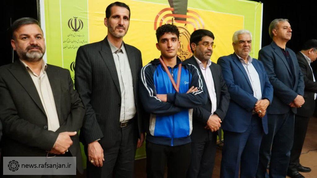 به گزارش پایگاه اطلاع رسانی شهرداری رفسنجان، آیین تجلیل از مقامآوران رشته هاکی در المپیاد ورزشی «طلای سبز» با حضور شهردار رفسنجان، اعضای شورای شهر، جمعی از مسئولان شهری و ورزشی، مربیان و خانواده ورزشکاران در آمفیتئاتر افصح هجری برگزار شد.
