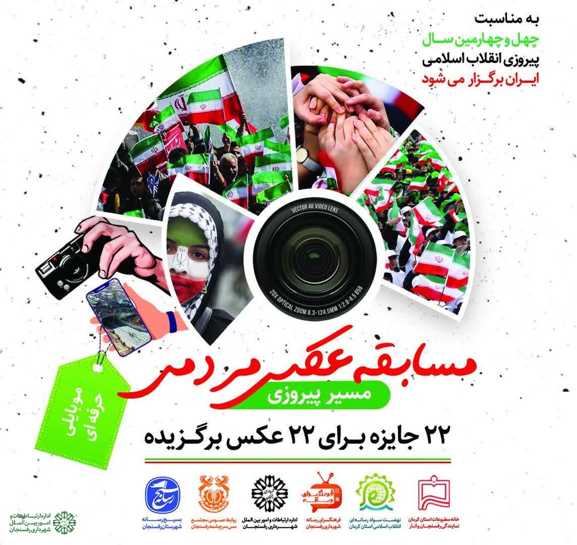 به گزارش پایگاه اطلاع رسانی شهرداری رفسنجان، در این مسابقه که در ادامه پویش «مسیر پیروزی» در دو بخش موبایلی و دوربینی برگزار شد، بیش از ۵۰۰ قطعه عکس از ۱۱۸ عکاس و شهروند رفسنجانی دریافت گردید.