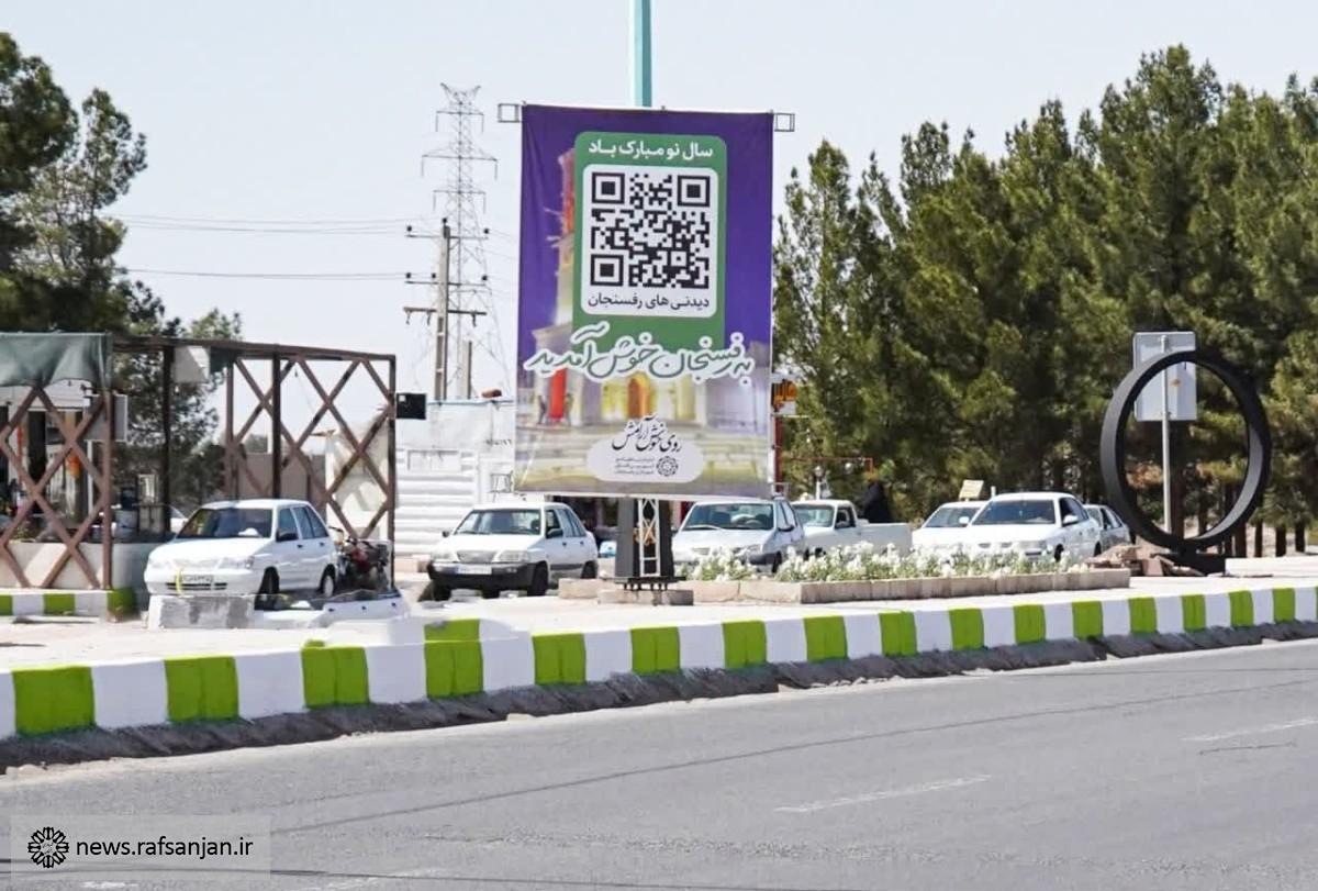 بهگزارش پایگاه اطلاعرسانی شهرداری رفسنجان، در آستانه سال نو و عید نوروز و ورود مسافران و گردشگران به رفسنجان، بنرهایی با مضمون «به رفسنجان خوش آمدید» با Qrcode «دیدنیهای رفسنجان» از در ورودی های شهر از طرف یزد، کرمان، زرند و هم چنین در میادین اصلی و نقاط مختلف شهر نصب شده است.