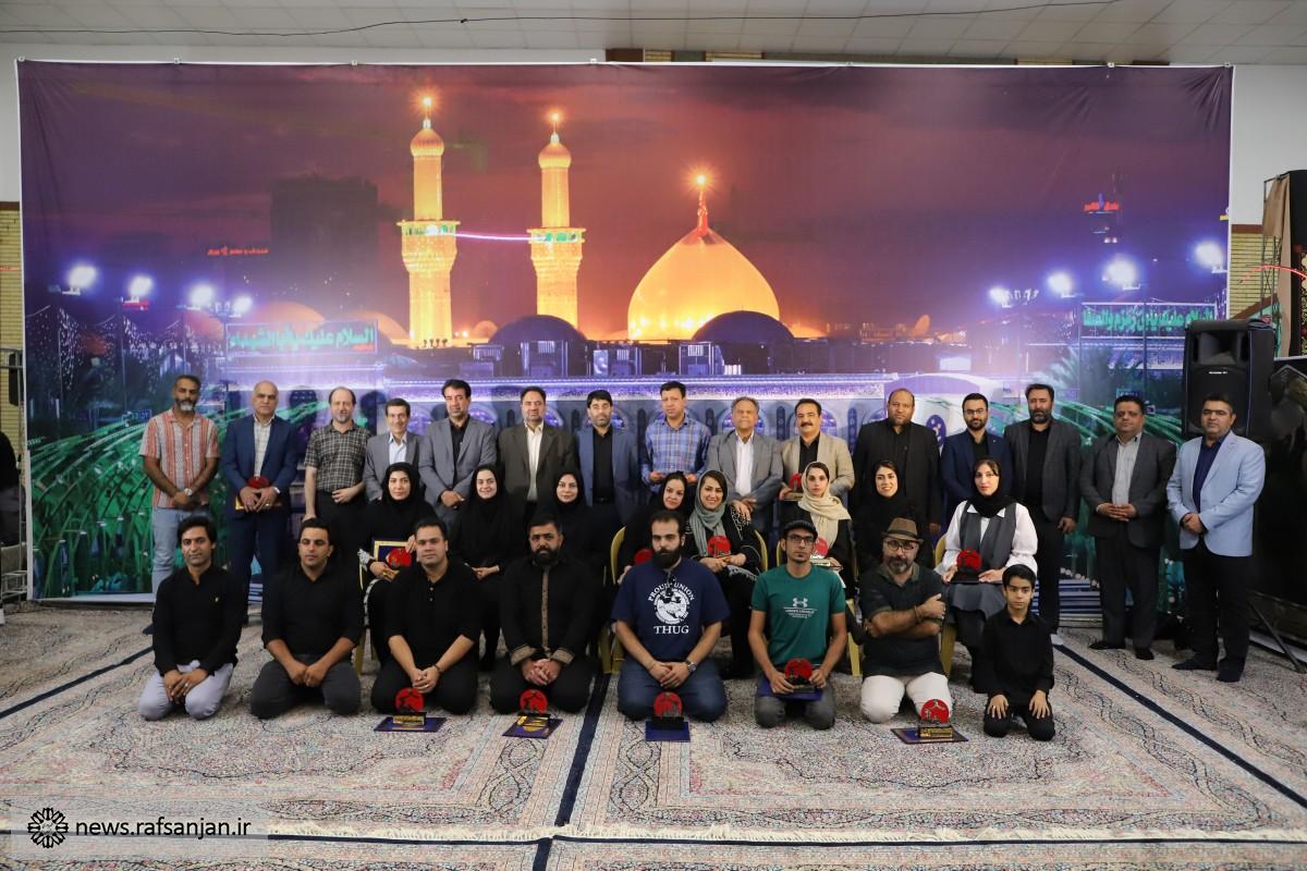 رئیس شورای اسلامی شهر رفسنجان در این مراسم با قدردانی از زحمات هنرمندان شرکتکننده در این سوگواره، اظهار کرد: در مدت برگزاری این سوگواره، حال و هوای خوبی در شهر با تصاویری که روی خیمهها حک شد، ایجاد شد.