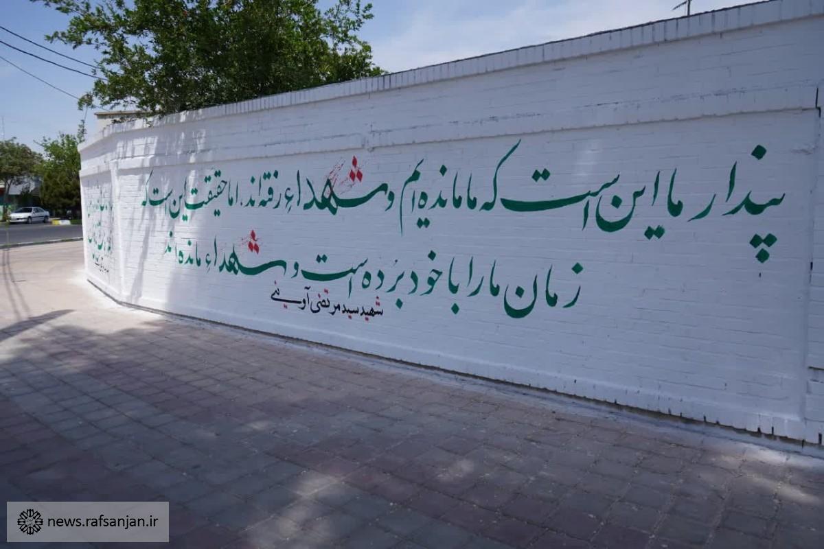 بههمت معاونت هنری شهرداری رفسنجان و بهمناسبت هفته هنر انقلاب اسلامی، یکی از معابر شهر رفسنجان، به هنر خوشنویسی مزین شد.
