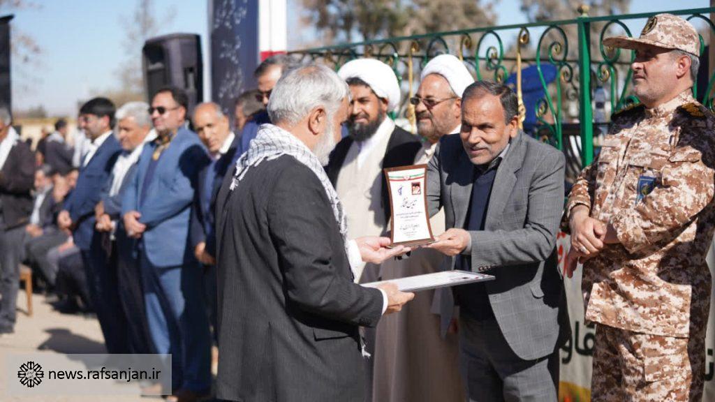در پایان مراسم، از پیشکسوتان بسیجی و بسیجیان نمونه شهرستان تقدیر و تجلیل به عمل آمد.