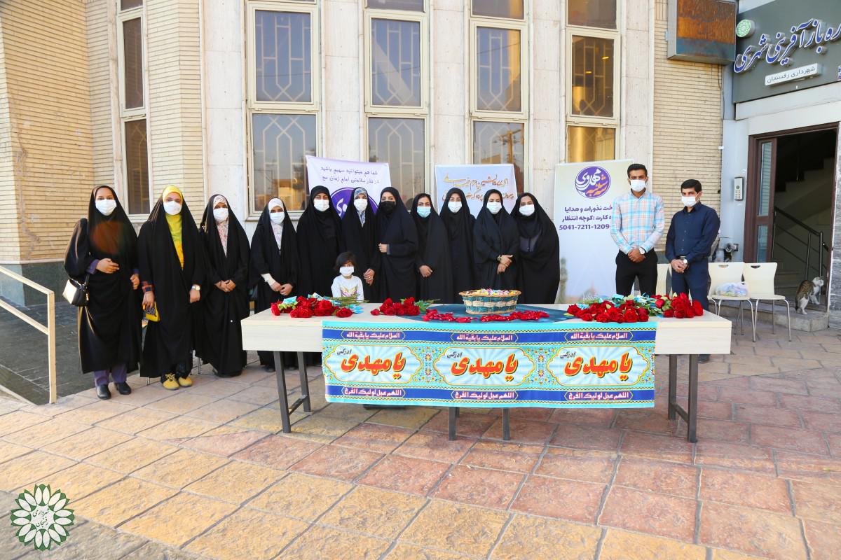 ?به گزارش روابط عمومی شهرداری وشورای اسلامی شهر رفسنجان فرهنگسرای خیام وترنج شهرداری با همکاری گروه سه شنبه های مهدوی به رهگذران میدان شهید سپهبد حاج قاسم سلیمانی شاخههای گل اهدا کردند این حرکت به مناسبت سالروز آغاز امامت حضرت ولی عصر (عج) و با هدف ترویج فرهنگ عفاف و حجاب انجام گرفت.