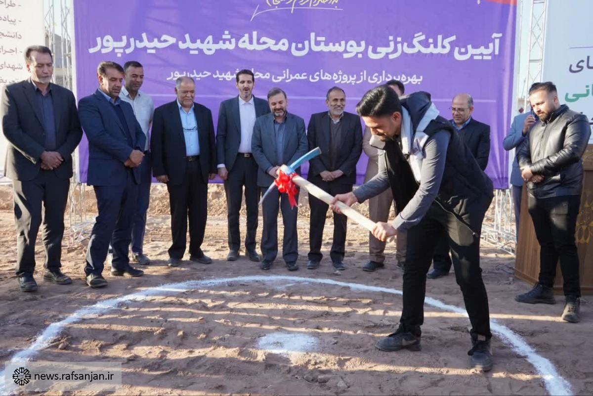 به گزارش پایگاه اطلاعرسانی شهرداری رفسنجان، مراسم افتتاح پروژههای عمرانی محله شهید حیدرپور و کلنگزنی بوستان این محله، عصر امروز با حضور فرماندار رفسنجان، رئیس و جمعی از اعضای شورای اسلامی شهر و اهالی محله شهید حیدرپور برگزار شد.