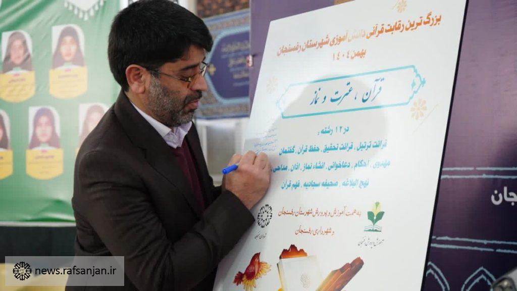 به گزارش پایگاه اطلاعرسانی شهرداری رفسنجان، پوستر مسابقات قرآن، عترت و نماز دانشآموزی شهرستان رفسنجان، بهعنوان بزرگترین رویداد رقابتی قرآنی دانشآموزی این شهرستان رونمایی شد.