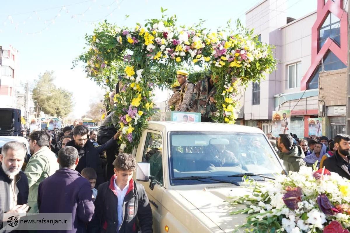 پیکر مطهر شهید از میدان شهید سلیمانی بهصورت خودرویی تشییع و در گلزار شهدای عباسآباد رفسنجان به خاک سپرده شد.