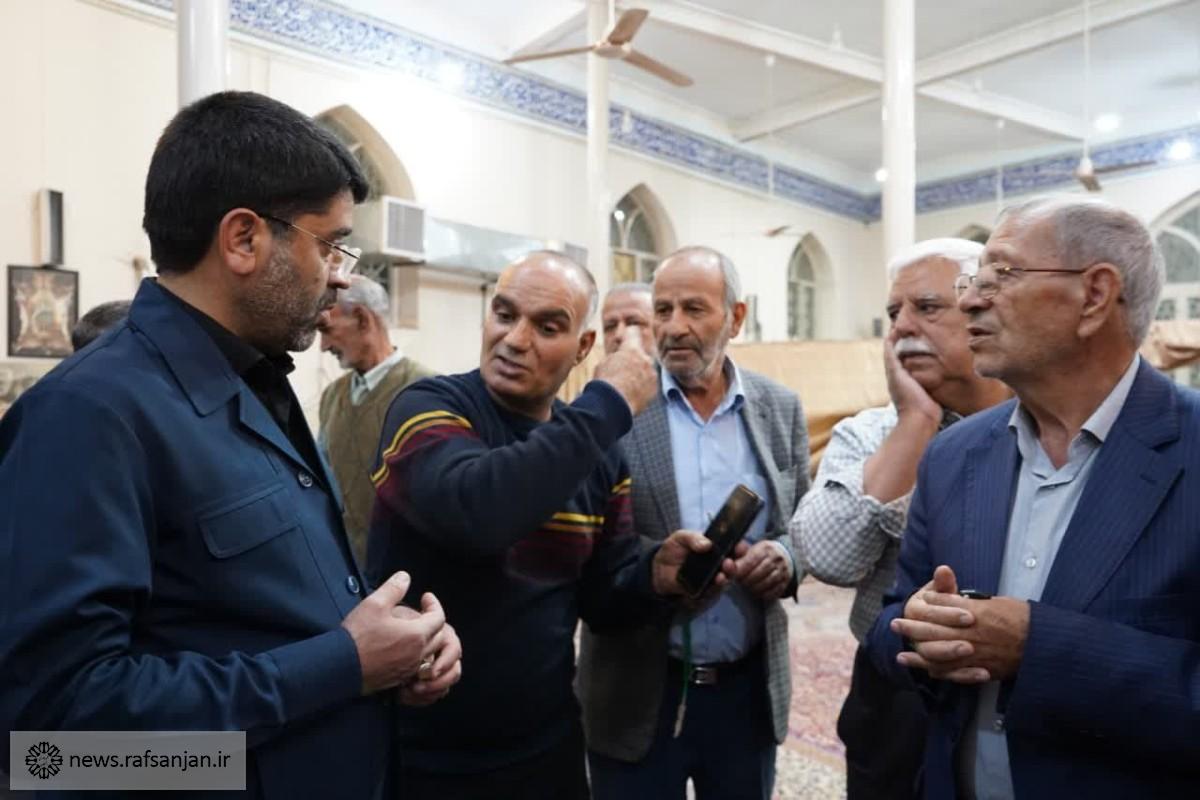 شهردار رفسنجان در جمع مردم در مسجد محله ماهونک، مطالبات ساکنین این محله را پیگیری کرد.