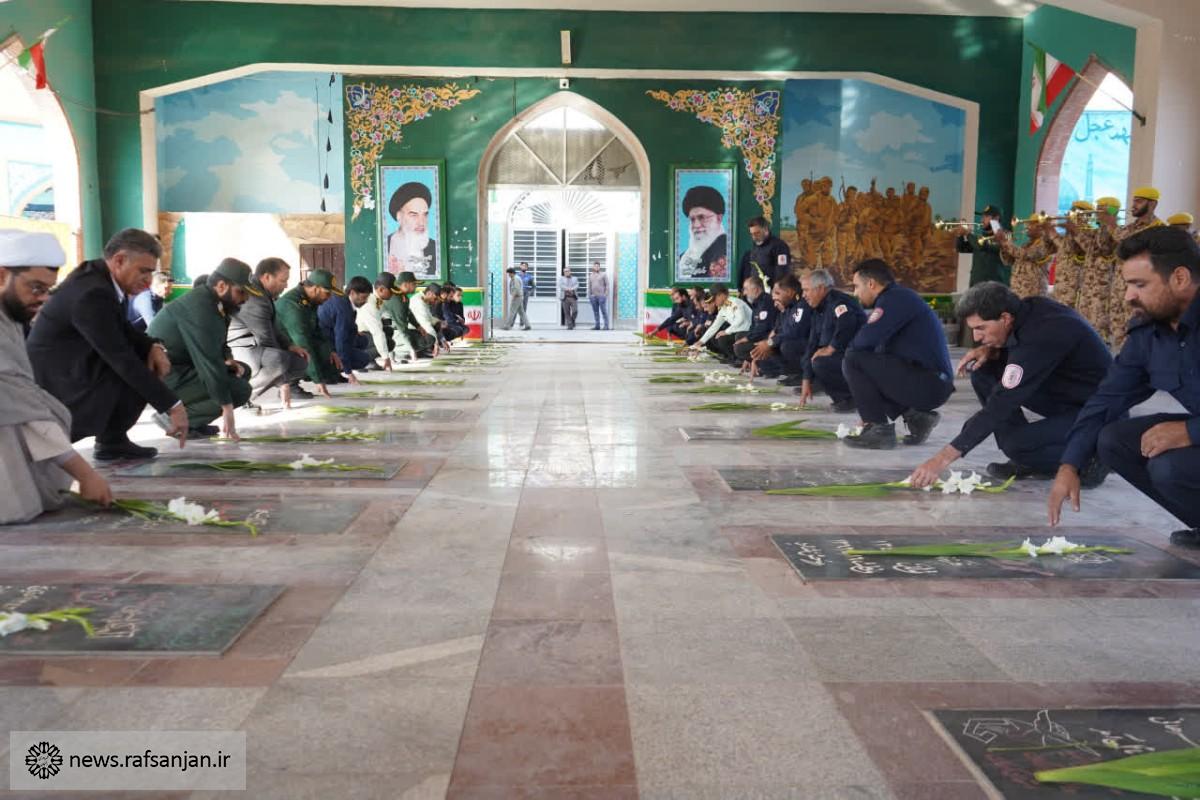 صبح امروز دوشنبه هفتم مهر و به مناسبت روز آتش نشانی و خدمات ایمنی، آتش نشانان رفسنجان با حضور در گلزار شهدای عباس آباد، به گلباران مزار شهدا پرداختند.