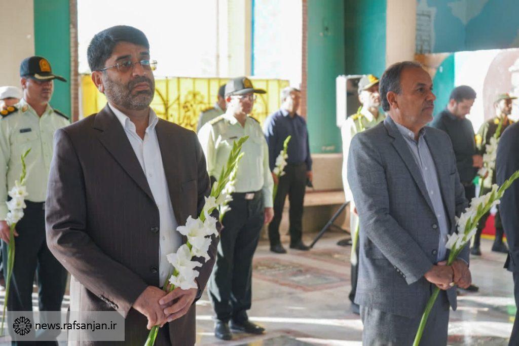 به گزارش پایگاه اطلاع رسانی شهرداری رفسنجان، در این آیین، فرمانده سپاه، نماینده مردم در مجلس، فرماندار، شهردار و دیگر مسئولین شهرستان حضور داشتند تا یاد و خاطره شهیدان را گرامی بدارند.