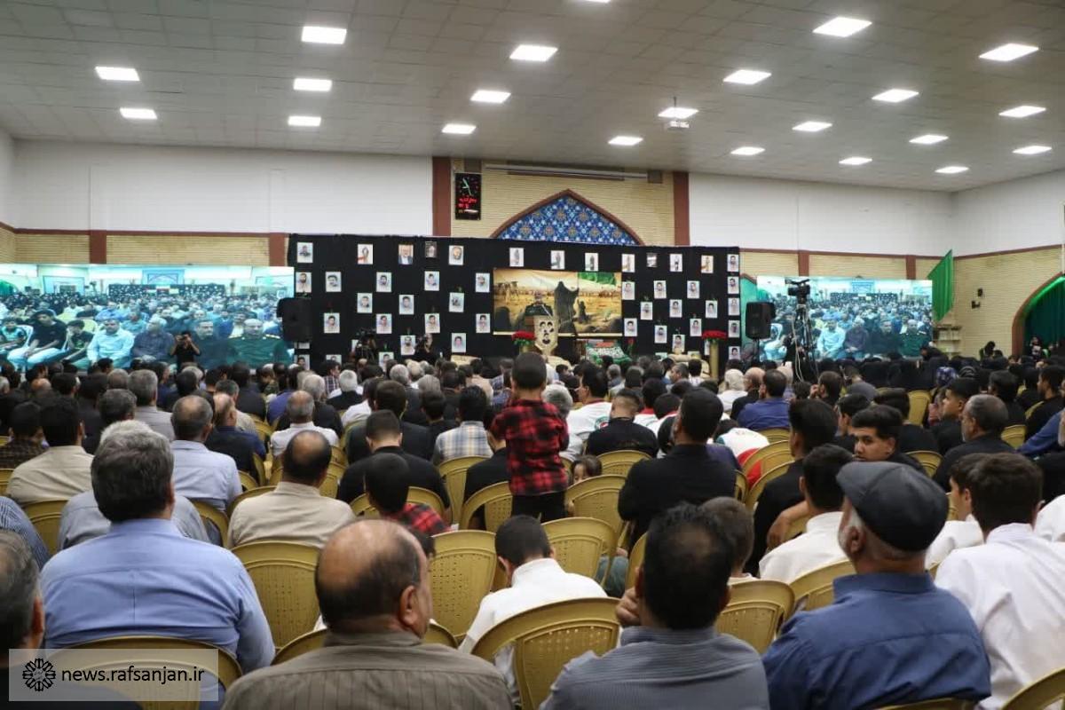 این مراسم که به همت شهرداری رفسنجان، مجتمع مس سرچشمه ،بنیاد شهید و امور ایثارگران، بنیاد مهدویت (عج) ،کانون خواهران شهدای رفسنجان وناحیه مقاومت سپاه برگزار شد، با سخنرانی سردار محمد مارانی «فرمانده قرارگاه مدینه»، روایت گری مدافعان حرم و نوای حاج علی مدد همراه بود.