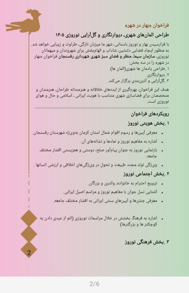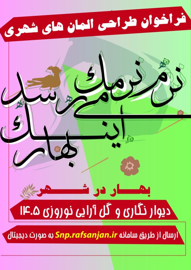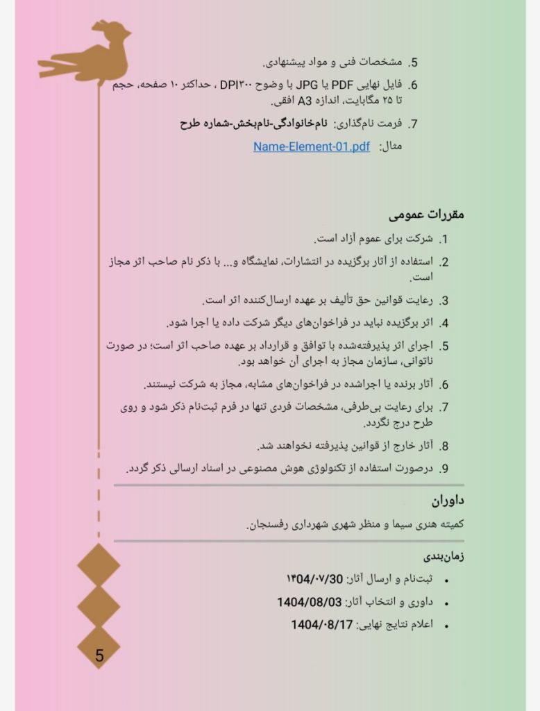 🔷 فراخوان طراحی المان های شهری رفسنجان | بهار در شهر ۱۴۰۴/۰۷/۰۳ لینک کوتاه مطالب مرتبط برچسب ها دیدگاه ها شما هم می توانید دیدگاه خود را ثبت کنید برای صرفنظر کردن از پاسخگویی اینجا را کلیک نمایید. Δ